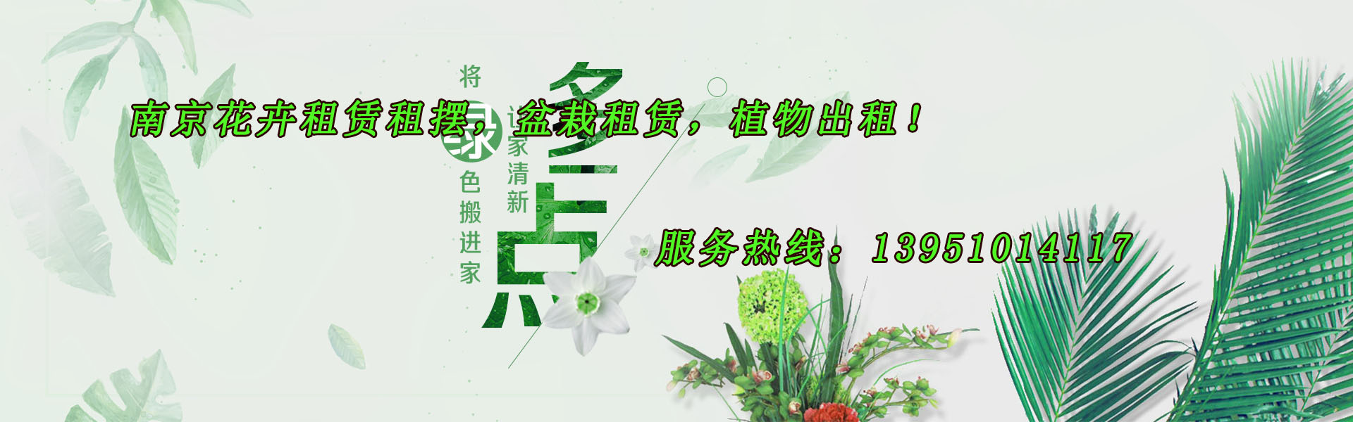 南京市江寧區綠地花卉園藝中心是南京專業的室內綠植租出、花卉租賃、鮮花租擺公司,致力于室內植物租賃、鮮花盆景出租、綠化養護、室內租擺花卉、花卉植物租賃、花木租擺、盆栽養護及辦公室花卉布置服務。